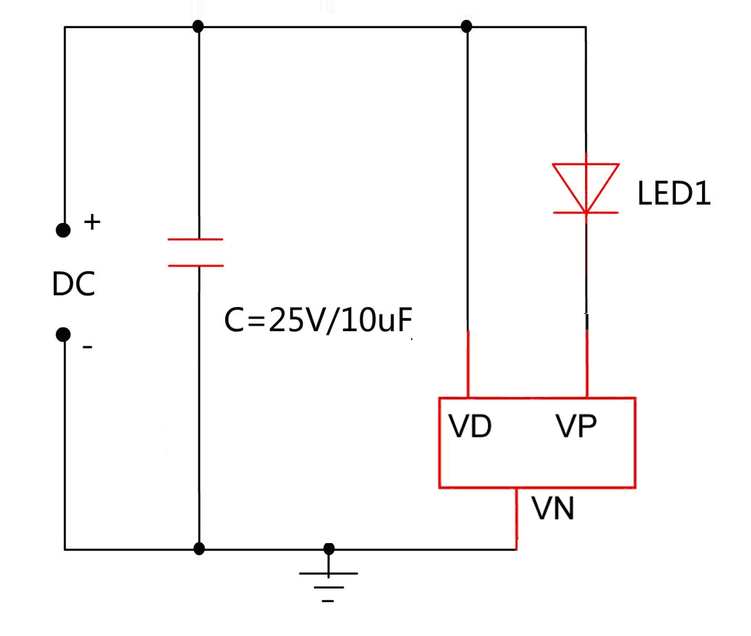 HX305的VD引腳加一個4.7uF左右的濾波電容,且該電容應(yīng)盡可能靠近VDD引腳和地。一方面,該濾波電容可以減小系統(tǒng)上電時VDD引腳的電壓尖峰,避免IC因過壓而損壞,另一方面,當(dāng)IC進(jìn)入過溫保護(hù)狀態(tài)時,該濾波電容可以避免在電源VD上出現(xiàn)因輸出電流波動而導(dǎo)致的大的紋波。