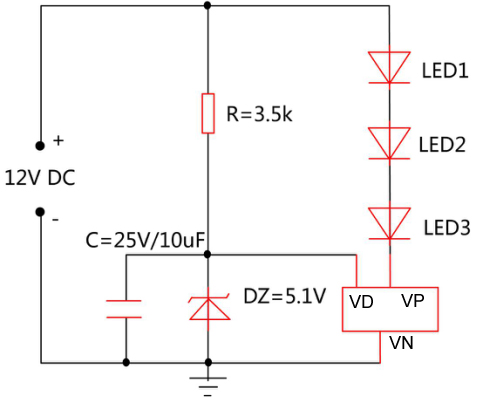 HX305無需外接其它元器件即可構(gòu)成一個恒流輸出的LED驅(qū)動電路,除LED外。