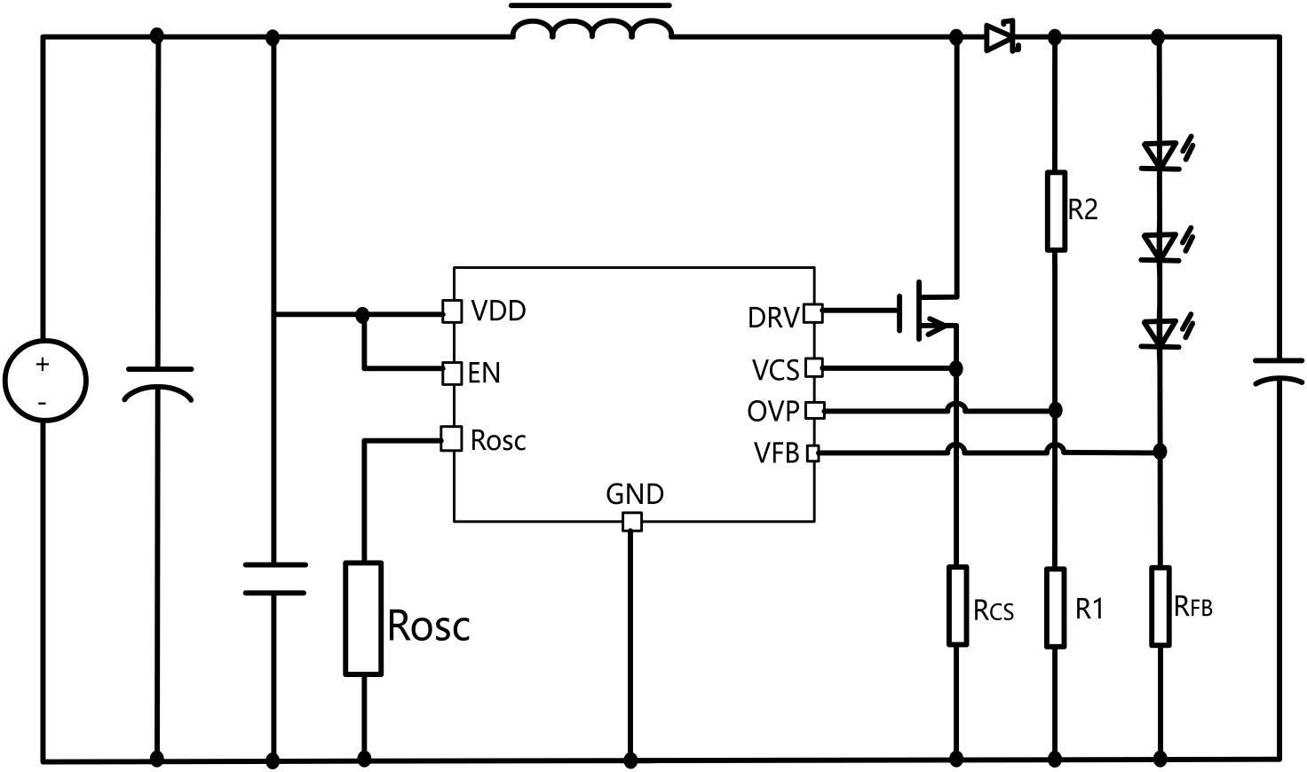 HX3335A內(nèi)部集成了軟啟動、輸出過壓保護、逐周期限流保護以入過溫保護電路,減少外圍元件并提高系統(tǒng)可靠性。
