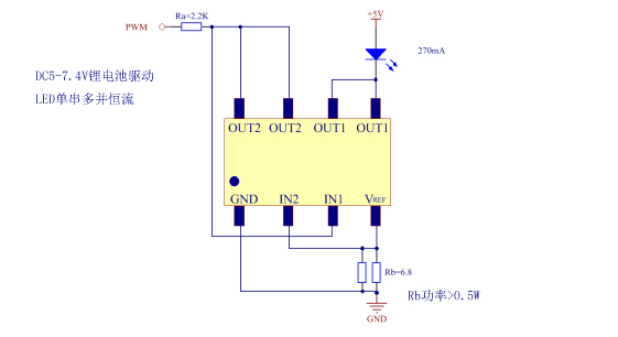 DC5-7.4V雙節(jié)鋰電池驅(qū)動(dòng)恒流應(yīng)用