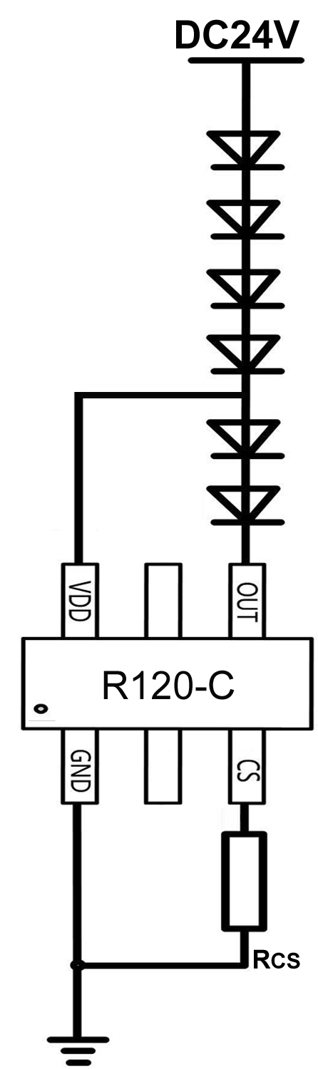 R120-C是一款適用于燈帶、燈條和燈板等應(yīng)用的中低壓照明恒流驅(qū)動(dòng)器,具有良好的抗沖擊能力和高可靠性。LED電流由連接CS腳與GND腳的電阻RCS設(shè)定,恒流精度高,一致性好,LED電流也可以使用PWM調(diào)光控制。適用于3-30V恒壓電源供電,不需要額外組件,系統(tǒng)結(jié)構(gòu)簡單,外圍元件極少,方案成本低。
